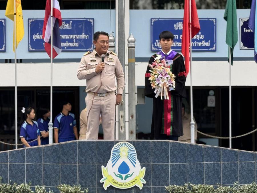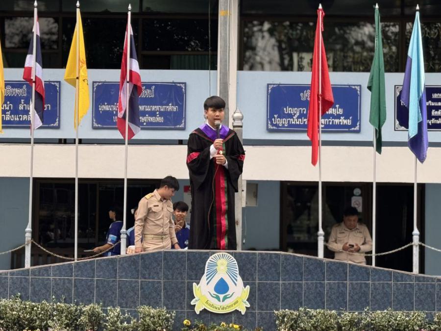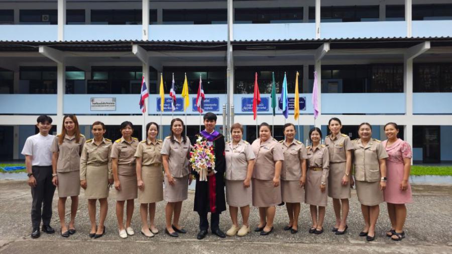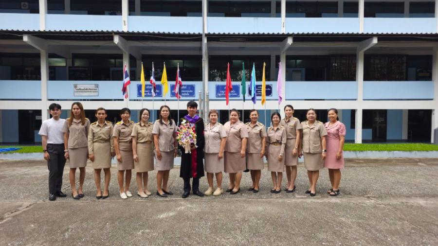 วันที่ 5 พฤศจิกายน 2567 นายขุนหาญ นิตตา ผู้อำนวยการโรงเรียนน้ำดิบวิทยาคม พร้อมด้วยคณะครู บุคลากรและนักเรียน มอบช่อดอกไม้แสดงความยินดีกับนายพีรเดช ธรรมพร ครูอัตราจ้าง วิชาเอกสังคมศึกษา เนื่องในโอกาสสำเร็จการศึกษาเข้ารับพระราชทานปริญญาบัตร จากมหาวิทยาลัยราชภัฏลำปาง ณ ลานกิจกรรมหน้าเสาธงโรงเรียนน้ำดิบวิทยาคม S:0