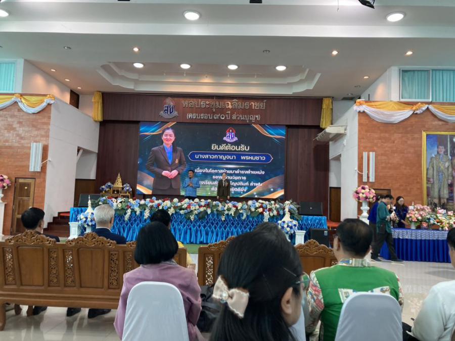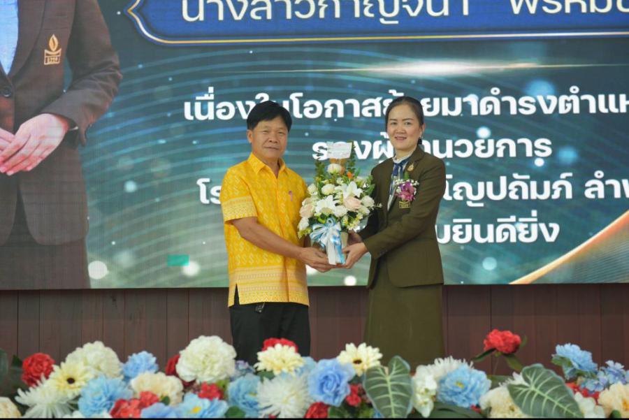 วันที่ 3 มกราคม 2568 นายขุนหาญ นิตตา ผู้อำนวยการโรงเรียนน้ำดิบวิทยาคม นายสุรเชษฐ์ คำสุวัตร์ ประธานคณะกรรมการการศึกษาขั้นพื้นฐาน พร้อมด้วยคณะครูและบุคลากรทางการศึกษา ร่วมแสดงความยินดีกับ นางสาวกาญจนา พรหมซาว เนื่องในโอกาสย้ายไปดำรงตำแหน่ง รองผู้อำนวยการโรงเรียนส่วนบุญโญปถัมภ์ ลำพูน ณหอประชุมเฉลิมราชย์โรงเรียนส่วนบุญโญปถัมภ์ ลำพูน S:0