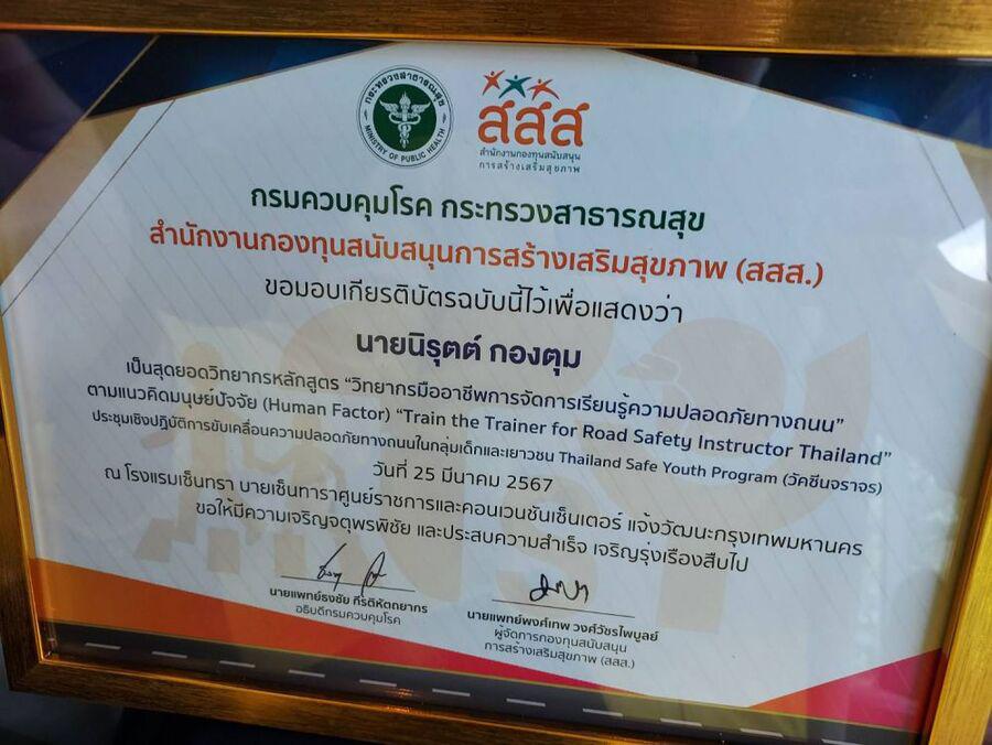 โรงเรียนน้ำดิบวิทยาคม ขอแสดงความยินดีกับนายนิรุตต์ กองตุม ที่ได้รับเกียรติบัตรสุดยอดวิทยากรหลักสูตร "วิทยากรมืออาชีพการจัดการเรียนรู้ความปลอดภัยทางถนน" ตามแนวคิดมนุษย์ปัจจัย (Human Factor) "Trian The Trainer for Road Safety Instructor Thailand" ในการประชุมเชิงปฏิบัติการขับเคลื่อนความปลอดภัยทางถนนในกลุ่มเด็กและเยาวชน Thailand Safe Youth Program (วัคซีนจราจร) และร่วมนำเสนอผลการดำเนินงานร่วมกับทีม TSY ลำพูนโมเดล เมื่อวันที่ 25 มีนาคม 2567 ณ โรงแรมเซ็นทรา บาย เซ็นทารา ศูนย์ราชการและคอนเวนชันเซ็นเตอร์ แจ้งวัฒนะ กรุงเทพมหานคร S:0