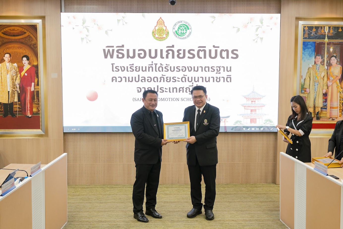 วันที่ 11 พฤศจิกายน 2568 นายขุนหาญ นิตตา ผู้อำนวยการ พร้อมด้วย นายทนงศักดิ์ พะวงรัตน์ ครูโรงเรียนน้ำดิบวิทยาคม เข้ารับมอบเกียรติบัตรโรงเรียนที่ได้รับรองมาตรฐานความปลอดภัยระดับนานาชาติจากประเทศญี่ปุ่น โดยมี ดร.พิเชฐ โพธิ์ภักดี เลขาธิการคณะกรรมการการศึกษาขั้นพื้นฐาน เป็นประธานในพิธีมอบเกียรติบัตร ณ ห้องประชุม 1 อาคาร สพฐ. 4 ชั้น 2